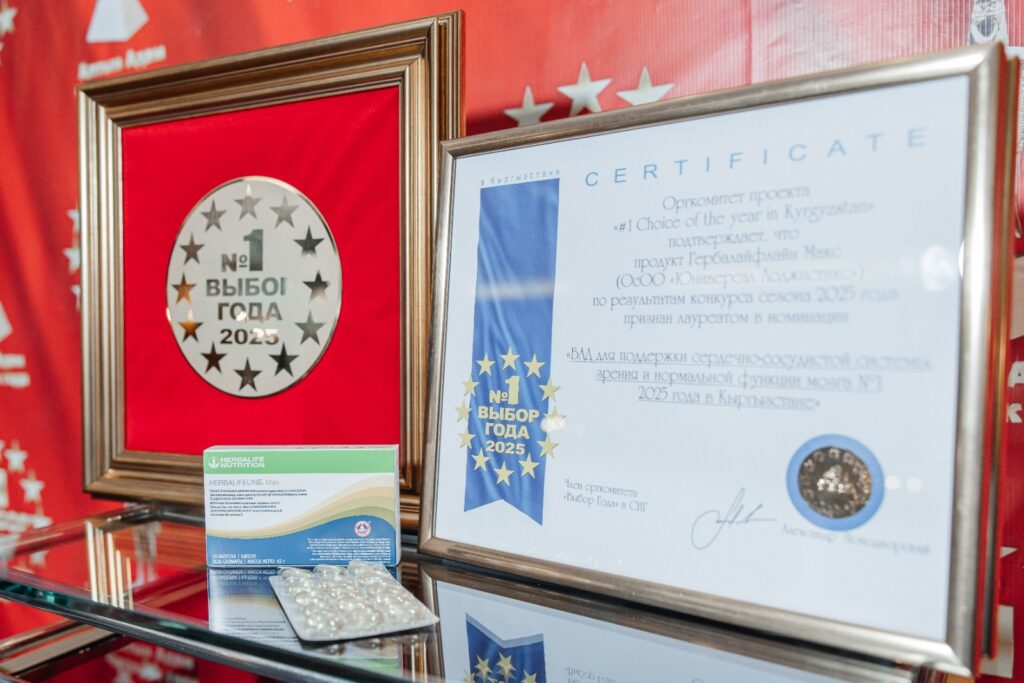 Кроме того, продукт Гербалайфлайн Макс был отмечен в номинации «БАД для поддержки сердечно-сосудистой системы, зрения и нормальной функции мозга №1–2025 года в Кыргызстане».